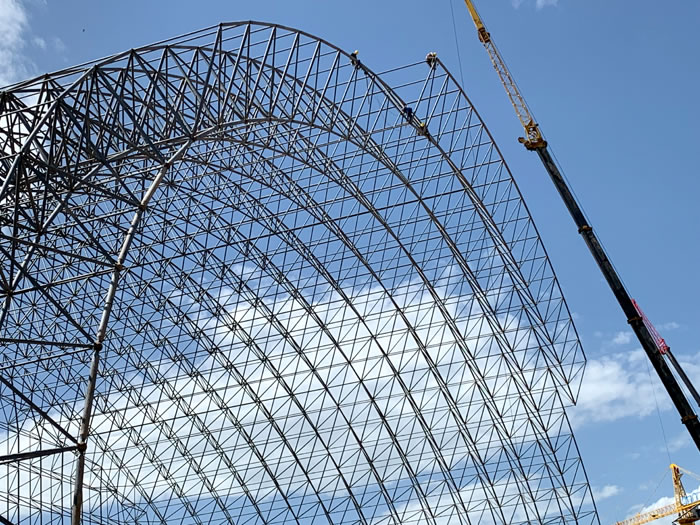 (2)网架加工前应对现场尺寸进行复测,确认无误后方可进行加工、安装;网架制作、运输、安装应遵守《空间网格结构技术规程》JGJ7-2010、《钢网架公主岭螺栓球节点》JG/T 10-2009、《钢网架公主岭螺栓球节点用高强度螺栓》 GB/T 16939-2016、《公主岭钢结构公主岭工程公主岭施工规范》 GB50755-2012、《公主岭钢结构公主岭工程施工质量验收标准》 GB50205-2020。